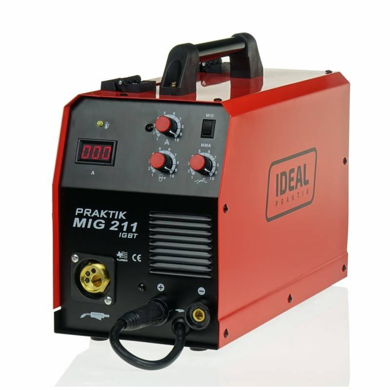 PRAKTIK MIG 211 stosowany jest do spawania stali węglowych i niskostopowych oraz aluminium . Spawanie odbywa się w osłonie gazu obojętnego, aktywnego bądź mieszanki, oraz przy odwrotnej biegunowości bez gazu.
