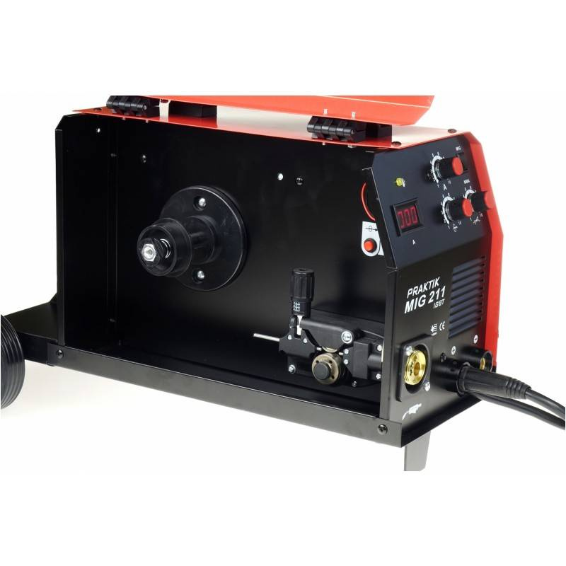 PRAKTIK MIG 211 MMA DIGITAL jest inwertorowym półautomatem spawalniczym przeznaczonym do spawania łukowego metodą MIG/MAG, MMA oraz FLUX. Urządzenie zostało zaprojetowane do szerokiego zakresu zastosowań: od prac konserwacyjnych do napraw nadwozi samochodowych.