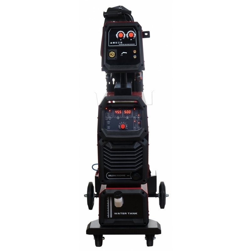Dostawa obejmuje urządzenie z zewnętrzym 4-rolkowym podajnikiem drutu, przewodem połączeniowym źródło podajnik o długości 2,5m, profesjonalnym uchwytem spawalniczym chłodzonym cieczą MIG 500 o długości 3 metry uzbrojonym pod aluminium, przewodem masowym o długości 3 metry oraz rolkami do podajnika 1,0-1,2 do stali i 1,0-1,2 do aluminium.
