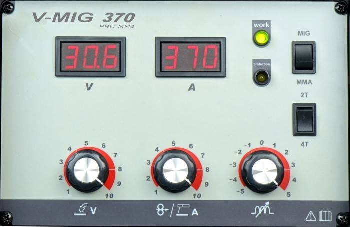Zakres regulacji prądu spawania: | 50 - 370 A (MIG) / 50 - 280A (MMA) |
