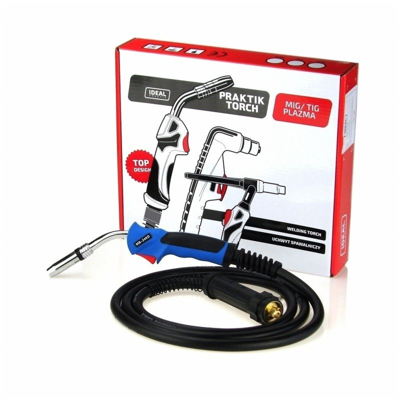 Profesjonalny uchwyt spawalniczy do urządzeń MIG. Prąd spawania dla cyklu pracy 60%: 250A (gaz CO2), 220A (mieszanka Ar/CO2). Długość 5 metrów.