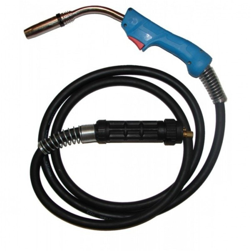 Profesjonalny uchwyt spawalniczy do urządzeń MIG. Prąd spawania dla cyklu pracy 60%: 300A (gaz CO2), 250A (mieszanka Ar/CO2). Długość 4 metry.