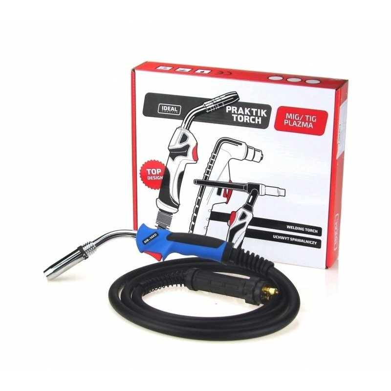 Profesjonalny uchwyt spawalniczy do urządzeń MIG. Prąd spawania dla cyklu pracy 60%: 300A (gaz CO2), 250A (mieszanka Ar/CO2). Długość 5 metrów.