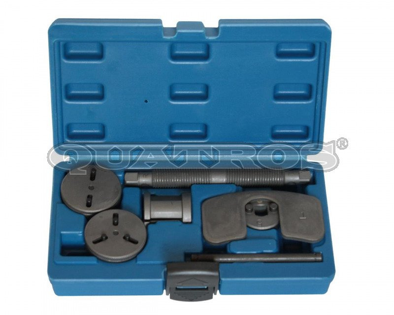 Uniwersalny przyrząd do cofania tłoczka hamulcowego podczas wymiany klocków hamulcowych. Zestaw zawiera dwa adaptery dwa- i trzy pin, z regulowanym rozstawem oraz uniwersalną prasę z możliwością pracy w dwóch kierunkach: w prawo i w lewo.
