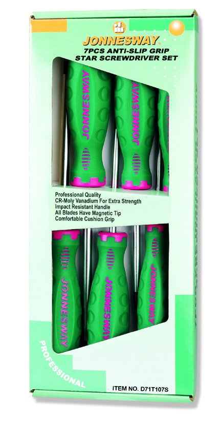 7szt. wkrętaków Torx: T10, T15, T20, T25, T27, T30, T40.