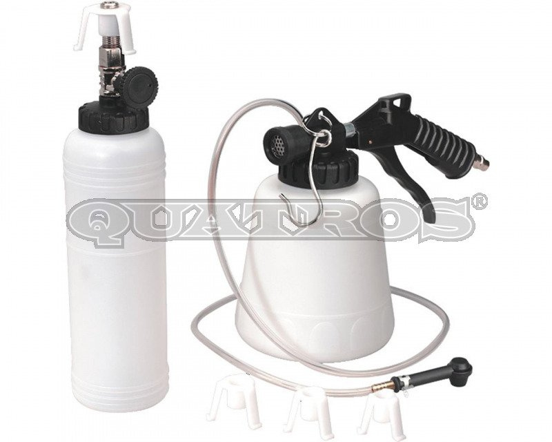 Uniwersalny przyrząd do wymiany płynu hamulcowego. W zestawie znajduje się pojemnik do uzupełniania płynu wraz z 4 adapterami montażowymi. Pojemność 0,75L.