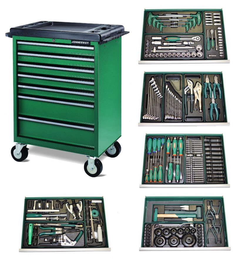 Wózek narzędziowy 7-szufladowy z kompletem 208 szt. narzędzi: