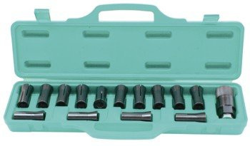 - 14 szt. tulei: M6x1; M7x1; M8x1; M8x1,25; M9x1; M9x1,25; M10x1,25; M10x1,5; M12x1,25; M12x1,5; M14x1,5; M14x2; M16x1,5; M16x2.