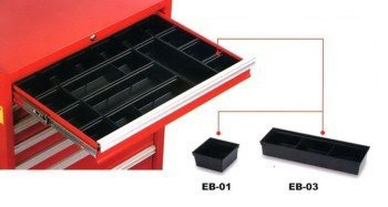 Zestaw korytek całkowicie wypełnia jedną szufladę wózka narzędziowego. Idealny do przechowywania małych elementów takich jak: śruby, nakrętki, wkręty, nity, złączki itp.