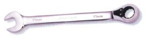 Klucze płasko-oczkowe, polerowane. Grzechotka 72-zęby pozwala na pracę w miejscach o ograniczonej przestrzeni (pojedynczy obrót klucza - 5°). Grzechotka posiadająca przełącznik do szybkiej zmiany kierunku (odkręcanie-dokręcanie). Stal chromowo-wanadowa ulepszana cieplnie. Końcówka oczkowa pod kątem 15°