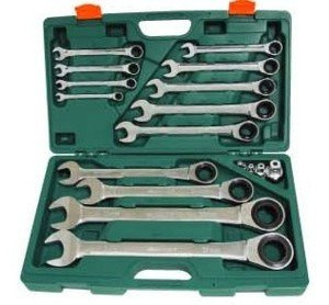 13szt. - klucze płasko-oczkowe z grzechotką 72 zęby: 8, 10, 12, 13, 14, 17, 19, 21, 22, 24, 27, 30, 32mm.
